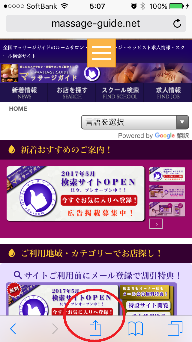 まずは、サイトを『ホーム画面に設定』お気に入り登録!何時でも簡単にお店を検索!ご利用頂けます。アプリみたいにホーム画面に登録され、アプリ感覚ですぐにマッサージ検索!