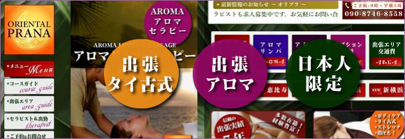 本場アロマや揉みほぐし、タイ古式等の民間資格取得したセラピストによるアロマリラクゼーション中心の出張マッサージ店。アロマオイルマッサージ、タイ古式やストレッチなど多くの手技によりお客様の体調や好みに合わせてほぐします。女性に人気のタイ古式とアロマオイルマッサージ。コンビネーションではタイ古式×アロマオイルコースの至れり尽くせりでほぐした後にしっかりオイル流しで極上の快眠へと誘います。